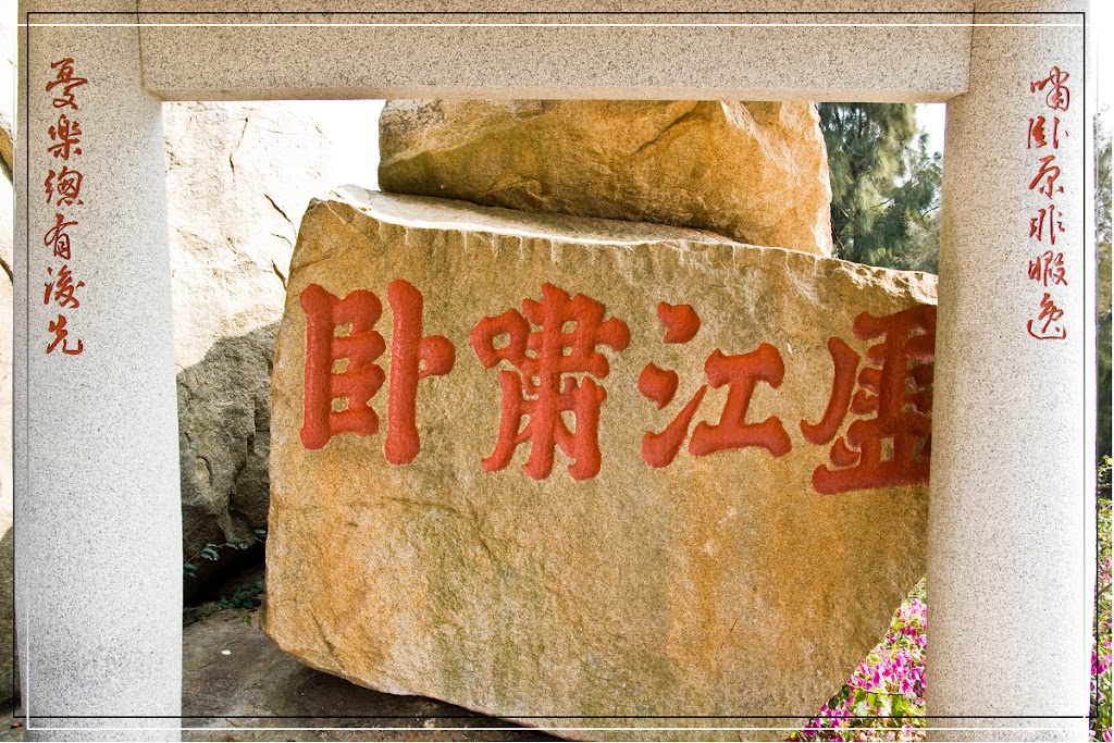 俞大猷(1503~1580年),字志輔,號虛江,晉江人,明代抗倭名將,與戚繼光齊名,世有「繼光如虎,大猷如龍」的美稱。俞氏於嘉靖十四年(1535年)由武進士除千戶,守禦金門。「虛江嘯臥」碑偈,位於金門城南磬山海濱摩崖。當時俞大猷嘗與地方紳耆黃偉、許福、顏揚等人,或僚屬常登臨城南「南磐山」石崖上休憩,觀覽海景,故在此題「虛江嘯臥」以明志