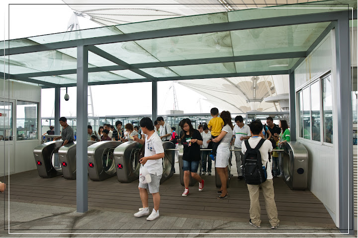 可以直接騎免費單車衝進館內(有單車道)...不過也要排隊...Orz